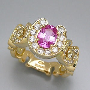 K18 フルダイヤ 2ブラウンダイヤ ピンクサファイヤ馬蹄バテイ8リング